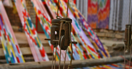 پس از آنكه رنگ به طور كامل خشك شد؛ الياف باز شده و روى دستگاه دارايىبافى بسته مىشود و با عبور پودها، نقوش هندسى بارنگهاى درهم پديد مىآيد.