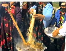 تا حدود دهه ١٩٢٠ و ١٩٣٠ ميلادی بر تيرهای بزرگ چوبی که از تنه درخت تهيه می کردند، گل های لاله يا شقايق نصب می کردند. سپس اين تنه درخت تزئين شده توسط گروه بزرگی از مردم در گردا گرد شهر حمل می شد. پس از اين مراسم مردم به مزار (گورستان يا آرامگاه) می رفتند. در برخی محل های آسيای ميانه اين مراسم با غسل در رودخانه پايان می يافت.
