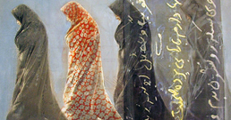 His collages are a combination of photographs from his family albums and private letters received from home, imaginatively blended with paintings. He describes his purpose as sharing his intimate life with the visitor, as well as an exploration of the past in order to find an explanation for the present. Women, mostly wearing chadors, are very prominent. Yet he does not consider the chador just as a religious emblem but as a powerful visual symbol of restrictions on personal development and individuality. There are also references to history in the pictures of Qajar women, the Court, and traditional wrestlers of the period.