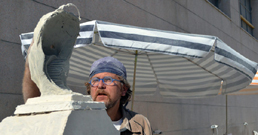 لوکا مارووینو، مدرس این کارگاه دوازده روزه مجسمهسازی، برنده سه جایزه در سمپوزیومهای کره جنوبی، فرانسه و تهران است. او همچنین در کشورهای لهستان، آلمان، انگلستان و فرانسه دارای نمایشگاه انفرادی مجسمه بوده و حالا هم استاد دانشگاه هنرهای زیبای و مدرس تخصصی مجسمهسازی با سنگ است. استاد ایتالیایی در میان کارهای شاگردانش قدم میزند و با دقت به کار هنرجوها نظارت میکند. گاهی قلم برمیدارد و طرح میزند؛ گاهی دستگاه تراش برمیدارد و میتراشد و همانند دانشجوها با اشتیاق و بدون خستگی کار میکند.