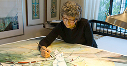 در نقاشیهایش از آبرنگ استفاده میکند چون معتقد است با تکنیک آبرنگ میتوان به صورت لایههای شفاف و روی هم کار کرد و حرفهای زیادی را از زیر لایههای رنگ نشان داد. "وقتی با آبرنگ کار میکنید باید با اتفاقاتی که برروی کاغذ میافتد کنار بیایید. درست مثل زندگی... وقتی رنگ و آب روی کاغذ میآید باید با آن ساخت و با آن کار کرد. این درگیری با آب و رنگ برای من بسیار لذت بخش است".