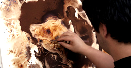 نقاش جوان قهوهای را که در آب حل کرده بود، روی بوم میریخت، سپس بوم را دقایقی رها میکرد تا قهوه روی آن خشک شود و بعد با قلممو و یا کاردک روی بوم کار میکرد و پس از گذشت دقایق نسبتاً کوتاهی تابلوی زیبایی ساخته میشد.