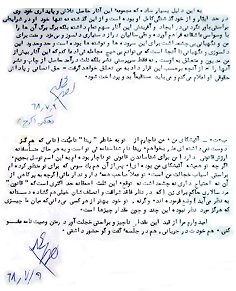 اين بار اما شما را به دیدار این خانه، پس از بیرون برده شدن وسایل شاملو، دعوت می کنم. یادداشتی از آیدا، همسر شاملو، را نيز کنار اين متن مى گذارم همراه با نوشته اى از احمد شاملو خطاب به آيدا.