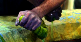 شوکا صحرائى در گزارش مصورى که از کارگاه رنگرزى آقاى جمشيد پور فراهم کرده نحوه کار در اين کارگاه را نشان مى دهد.