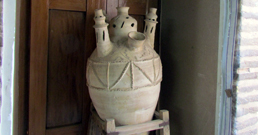 یک خمرۀ سفالی که شکل مشک دارد و بر بالای آن بادگیرهای کوچکی برای خنک نگهداشتن آب تعبیه شده از اشیای نادر موزه است. حیاط عمارت حوض کوچکی دارد که زمانی آب از آن فواره میزد اما امروز خاموش است. آبی که از آن فواره میزد در منبع پشتبام عمارت ذخیره میشد و برای شستشو در داخل عمارت هم از همین آب استفاده میشده است.