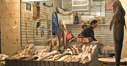 ماهی فروشان بهترین ماهی های صید همان روز را در ردیف های منظم به صف کشیده اند. سبزی فروش ها سبزی های دسته شده با طراوت را به نمایش گذاشته اند. اما چیزی که جذابیتش بیشتر است مجمعه های بزرگ لبه بلند است که حلوای شکری، کنجدی و حلوای ارده را در خود جا داده اند. فروشنده با کاردی بزرگ چنان ماهرانه حلوا را در مجمعه می برد که گویی کیک تولد است. حلوا همانجا پیش چشم مشتری پخته می شود.