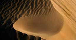 و افق که از یک سو دریایی از صف بیپایان تپه ماهورهای رقصان در باد (۲)، که گویی موجهای بلندِ دریایی طوفانی است، و از سوی دیگر دریایی آرام تا دوردستها سفید و درخشان است، گویی همانند موجهای کوچک و یک دست پشت سر هم تا انتهای دنیا ایستادهاند و تو را به سوی خود میخوانند.
