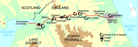 دیوار هدرین مهمترین یادگار لشکرکشی امپراطوری روم به سرزمینی محسوب میشود که امروز بریتانیا نام دارد. این دیوار از کنار چند رودخانه و از میان زمینهای کشاورزی بسیار سرسبز و باشکوه میگذرد و تا مردابهای نمکی در خلیج "سالوی" به طول ۸۰ مایل امتداد دارد.