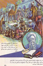 یک مصور سازی « ایلوستراسیون»  به سبک قصه های عامیانه است که در آن صورتی پنداری از رودکی و چنگی که نماد شاعر است  در داخل صفحه  مندرج یا "اینست" شده و در مجموع دوران سامانیان در تاریخ ایران را هنرمندانه و حرفه ای مجسم می سازد.