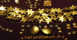 همینطور دراین نمایشگاه گنجینههایی از چین، هند و امپراتوری روم مربوط به دو هزار سال پیش دیده میشود که در بگرام در شمال کابل یافت شدهاند و نیز قطعاتی طلایی که در طلاتپه کشف شدهاند، شامل دستبندها ، خنجرها ، طلسمها ، جامها و گوشوارههایی که از داخل یک گور قدیمی پنج زن و مرد کشف شدهاست.