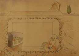 طنزهای تصويری شما که رنگهای شاد دارد با شادخويی، مرگ را جشن می گيرد، آئين مردگانی را بدل به نشاط زندگی هر روزی می کند. مردگان انگار هر آن کاری که نمی توانسته اند روی زمين بکنند زير زمين انجام می دهند. راستی زير کدام جای زمين است؟ چرا زندگی زير زمينی می شود و چگونه؟ چرايی اش کار هنرمند نيست اما چگونگی اش را با سبک روحی و شنگولی به ما نشان داده ايد. در اين ديار نيستی که خوش هوای دلکشی دارد، اندوه راه ندارد. اندوه آن بالا جا مانده در مراسم اشک ريزان بازماندگان که بيشتر بايد بر خود بگريند تا بر رفتگان. رفتگان اين پائين، بی نيازند از اين اشکها، گرچه گاهی سيل گریۀ عزاداران، نشت می کند به پائين تا حوضی پر از ماهی تدارک کند. مردگان زنده دل اين پائين آرزوها و بيم و اميدهای خود را دارند، از مشکلات گور به گوری و همسايگی ناجنس تا مراسم شاد عروسی و کنسرت و تفريح فردی و گروهی و خلوت عاشقانه. گاهی طنازی طرح ها چند لايه است: عروس و داماد مرده که به اقتضای کار امشب نيازی به تن پوش ندارند لباس پوشيده اند و مدعوين اسکلت هايی برهنه اند. يا حمالان جسد بر اثر سنگينی مرده آرزو می کنند که تخته سنگی مرده را دوباره له کند. آرزوهای اعيانی مردگان که مشت و مال فرشتگان را طالب اند تنها می تواند عذاب آنان را سنگين تر کند، اما عقوبتی در کار نيست. چه عقوبتی گرانبارتر از زيستن پيشين. « اکنون ز چه ترسيم که در عين بلائيم؟ ».