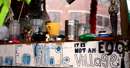 A number of Londoners have appealed to nature for help to avoid modern day stress, and have made ‘eco-villages’ in the hope of experiencing forgotten human tranquility. Just next to Kew Bridge in west London, in a piece of land with no buildings and full of overgrown bushes, there are a number of tents with people walking around. Is this agricultural land, or a place where the poor and homeless live? The notice at the entrance says ‘Things required and times of visit’. Should you take a step inside and talk to the people there, you can find out what kind of place it is.