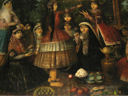 نفوذ آداب چای نوشی را می توان دريکی از نقاشيهای معروف دوران قاجار ديد که اثری است ازاسماعيل جلاير و اکنون در موزۀ ويکتوريا و آلبرت لندن است. اسماعيل جلاير با چيره دستی زنان دربار را در ايوانی رو به باغ در پای سماور ترسيم می کند. زنانی که به رقص، نواختن موسيقی، کشيدن قليان ويا نوشيدن چای سرگرم اند. در کنار سماور، قوری چای، قند و شيرينی های گوناگون، ميوه هايی مثل انجير، انار و هندوانه ديده می شود. به گفته ای، اين نقاشی يادآور تصويری است که همسر سفيرانگليس، ليدی شل، در خاطرات خود از مهمانی چای مهد عليا، مادر متنفذ ناصرالدين شاه ارائه کرده است. او در روز ۱۲ ژانويه ۱۸۵۰ درخاطرات خود آورده است: درمهمانی مهد عليا چای، قهوه و قليان برای مهمانان آوردند. پس از مدتی انواع ميوه ها و شربت ها به همراه نوشيدنی های سرد به مهمانان تعارف شد.