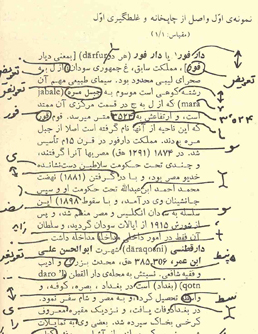 او در دائرة المعارف فارسی، در زمینۀ رسم الخط و ضبط علائم و حروف، صاحب رأی و نظر و ابتکار بود و روش مخصوص او در وضع لغات جدید علمی و ترجمۀ اصطلاحات خارجی مشخص است. ابداع حروف "ایرانیک" در فارسی به جای حروف ایتالیک در متون لاتین از ابتکارات دیگر اوست.
