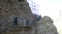 خیال میکردیم چارپایان تا قلعه ما را خواهند برد. زهی تصور باطل! آنها حتا نیمی از راه را نمیرفتند. البته صاحبانشان زرنگتر از آن بودند که از پیش اعلام کنند الاغشان تا کجا به ما سواری خواهد داد. هنوز پانصد ششصد متری طی نکرده بودیم که گفتند بقیه راه را باید پیاده گز کنیم. چارهای نبود. هم باید پول را میدادیم (پنج هزار تومان که حتا بر مبنای قیمتهای اروپا و آمریکا هم گران بود) و هم بخش اصلی راه را پیاده طی میکردیم. قلعه از سه سو بهکلی غیرقابل دسترسی است و از جهت چهارم، راه چندان صعبالعبور است که اگر پلکانها و دستگیرههایی که برای کمک به گردشگران ساخته شده، وجود نداشت، واقعأ نمیشد تا آخر آن رفت.