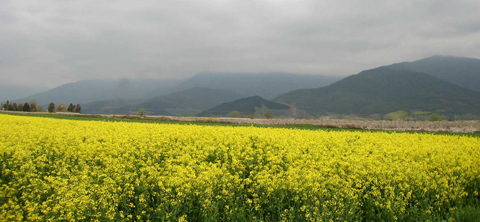 از زمین های زراعی گرداگرد ده خبری نبود. یک عالم شکوفۀ صورتی، چشم انداز خانه را می ساخت، و دورتر، کلزا، گیاه روغنی که کشتش این سال ها باب شده، با گل های زردِ وسط بته های سبز نشسته، تمام صحرا را رنگ می زد.