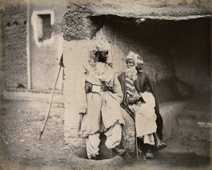 اين افراد شبيه نيروهای بومی ارتش هند هستند و می دانند که عکسشان گرفته می شود. به سلاح ها و کالسکه های پشت چادر ها در سمت چپ عکس توجه کنيد. اين يک ارتش درست و حسابی است.سيمپسون همچنين به شيوه يک توريست از "تيپ ها"ی افغان عکس برداشته است. اين عکس فروشندگان اسب در قندهار است.